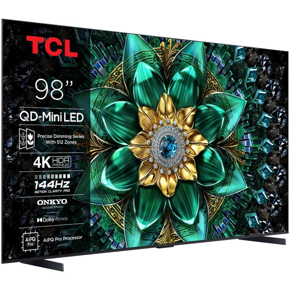 Met zijn enorme schermdiagonaal van 2,49 meter, 4K Ultra HD-resolutie en QD-MiniLED-technologie biedt de TCL 98Q6C een meeslepende kijkervaring die thuisbioscoopniveau bereikt.