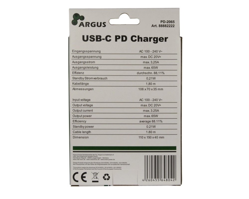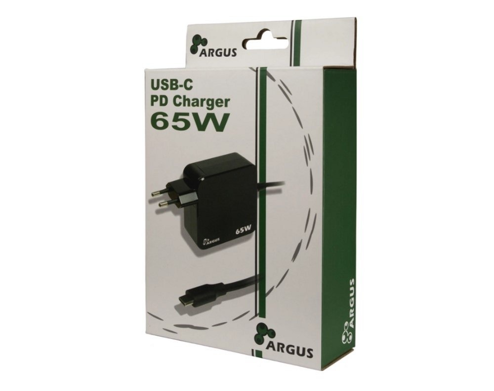 Argus PD-2065 | Universele USB-C Oplader 65W | Zwart | Met Geïntegreerde Kabel
