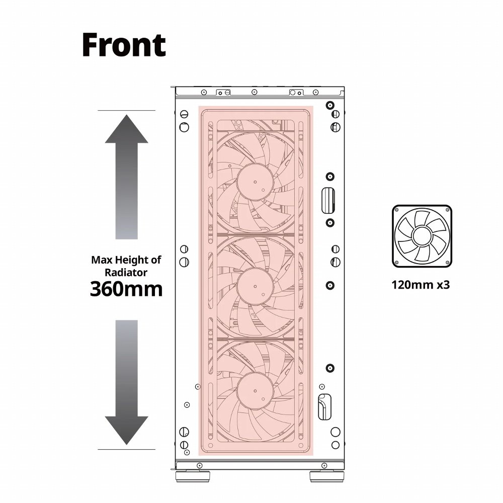 Azza Sentinel. Vormfactor: Midi Tower, Soort: PC, Kleur van het product: Zwart. Aantal geïnstalleerde ventilatoren voorzijde: 2x 120 mm, Voorste ventilators ondersteunende diameters: 120 mm, Geïnstalleerde ventilatoren achterkant: 1x 120 mm. Ondersteunde HDD-groottes: 2.5,3.5". Breedte: 203,5 mm, Diepte: 415,5 mm, Hoogte: 454 mm