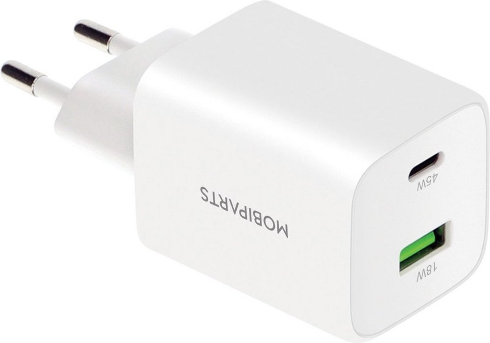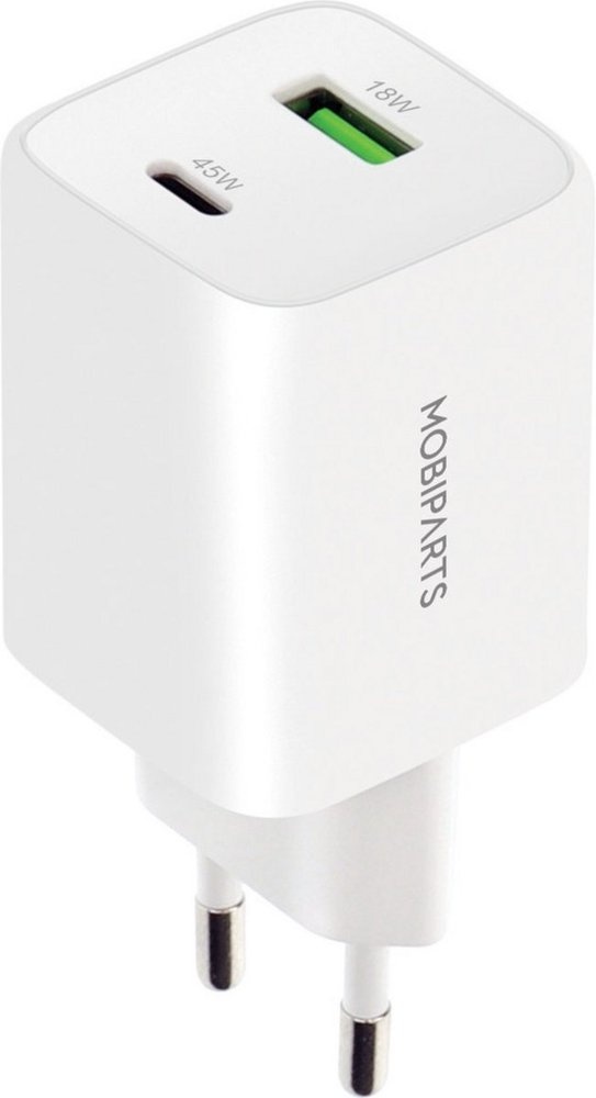 De Mobiparts GaN Wall Charger is een krachtige en veelzijdige oplader waarmee je al je apparaten snel en efficiënt kunt opladen. Met USB-C, USB-A 3.0 en Quick Charge (QC) ondersteuning biedt deze oplader maximale compatibiliteit voor een breed scala aan apparaten, waaronder smartphones, tablets, laptops en meer.