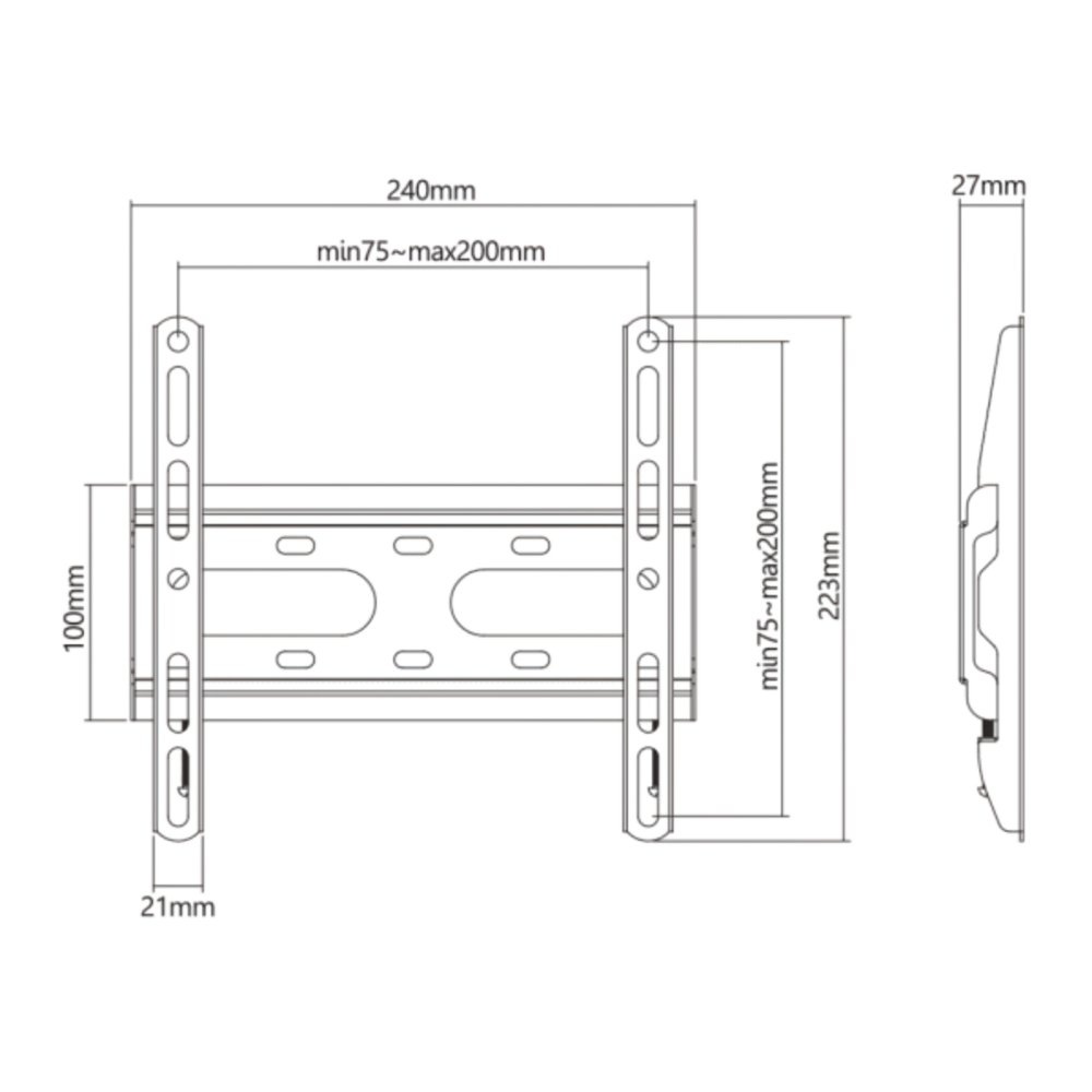 De SBOX PLB-2522F-2 is een compacte en betrouwbare vaste tv-muurbeugel, ontworpen voor schermformaten van 23 tot 43 inch met een maximaal gewicht van 45 kg. Dankzij de brede VESA-compatibiliteit van 75×75 mm tot 200×200 mm is deze beugel geschikt voor een breed scala aan tv-modellen, inclusief gebogen schermen.