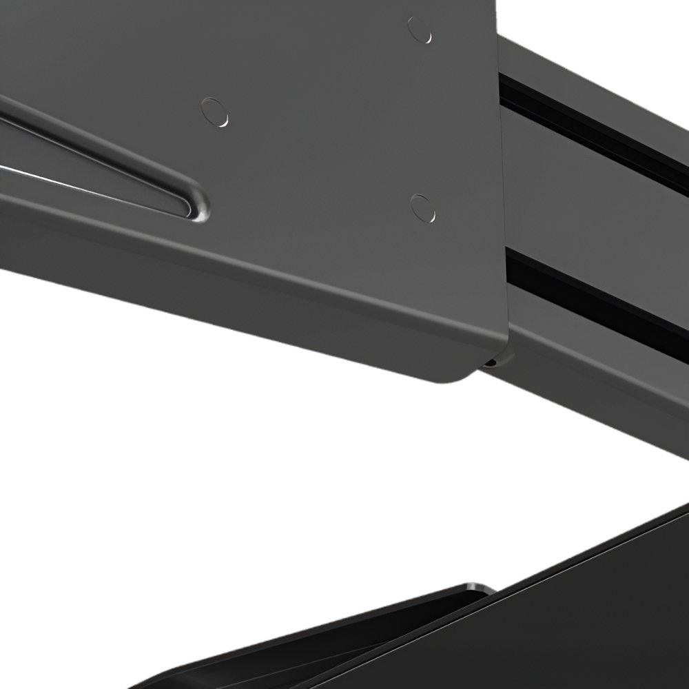 De beugel is vervaardigd uit hoogwaardig staal en kunststof met een zwarte poedercoating, wat zorgt voor een duurzame en stijlvolle afwerking. De afneembare VESA-plaat maakt installatie eenvoudig en snel.