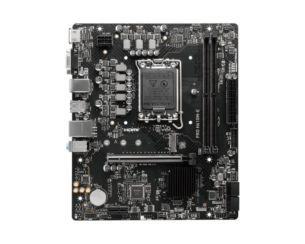 Ontmoet de MSI PRO H610M-E, een krachtig micro ATX-moederbord ontworpen om te voldoen aan de eisen van moderne computing. Met ondersteuning voor Intel® Celeron®, Intel® Core™ i3, i5, i7, en i9-processors op LGA 1700-socket, biedt dit moederbord een solide basis voor diverse computerconfiguraties.