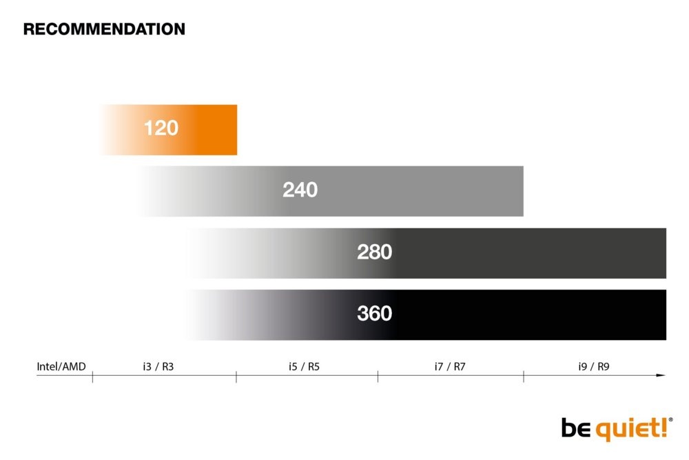 Pure Loop 280mm is een indrukwekkend goed presterende en stille All-in-One waterkoeler van be quiet! voor prijsbewuste gebruikers met overgeklokte systemen. Het volledig zwarte ontwerp en de witte LED op het koelblok maken van de Pure Loop een echte blikvanger in elke PC kast. Functie, stijl en bruikbaarheid gaan hand in hand met Pure Loop, aangezien de navulpoort gemakkelijk toegang biedt en de extra koelfles zorgt voor een lange levensduur. Ventilator diameter: 14 cm.