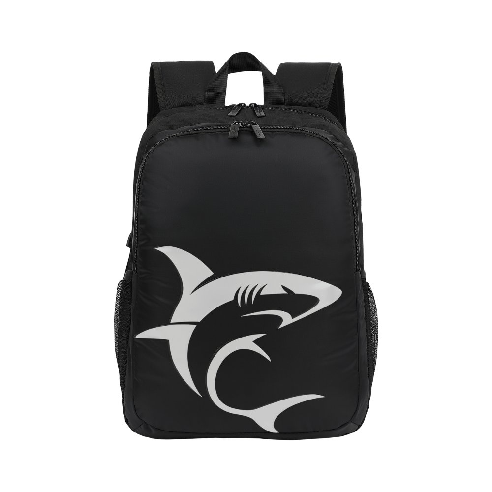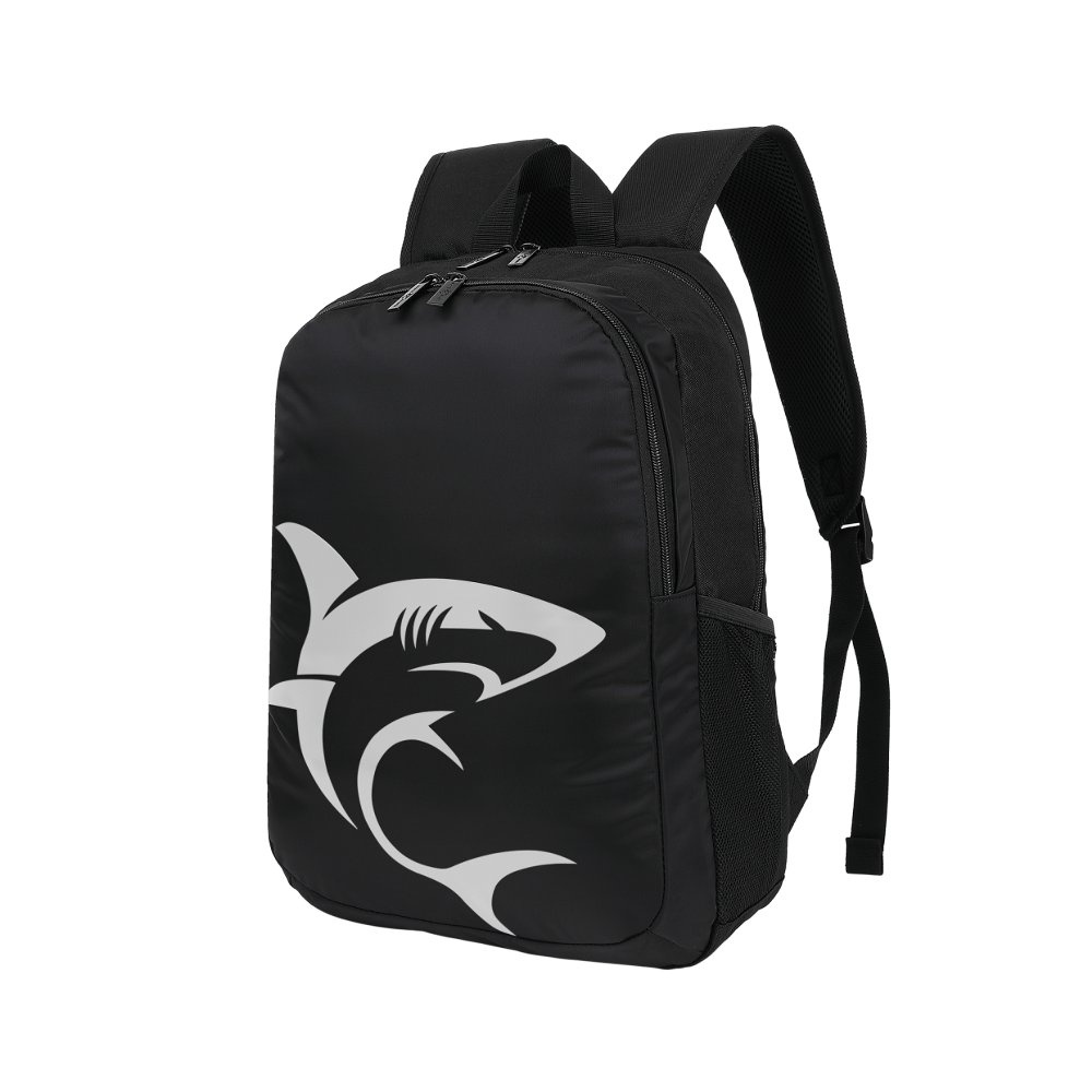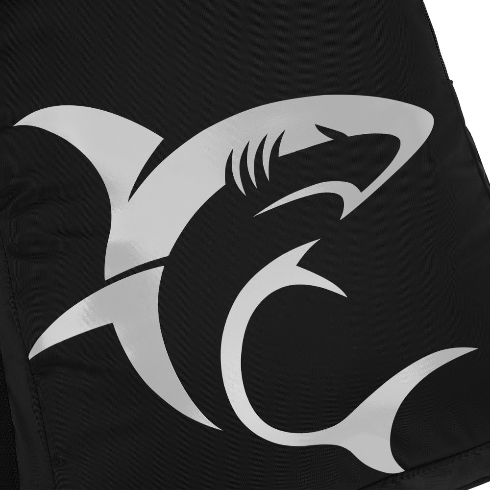 De rugzak is uitgerust met gewatteerde schouderbanden en een handgreep voor comfortabel dragen, zowel op de rug als in de hand. Het strakke zwarte ontwerp met het opvallende witte White Shark-logo op de voorkant geeft de rugzak een moderne en professionele uitstraling.