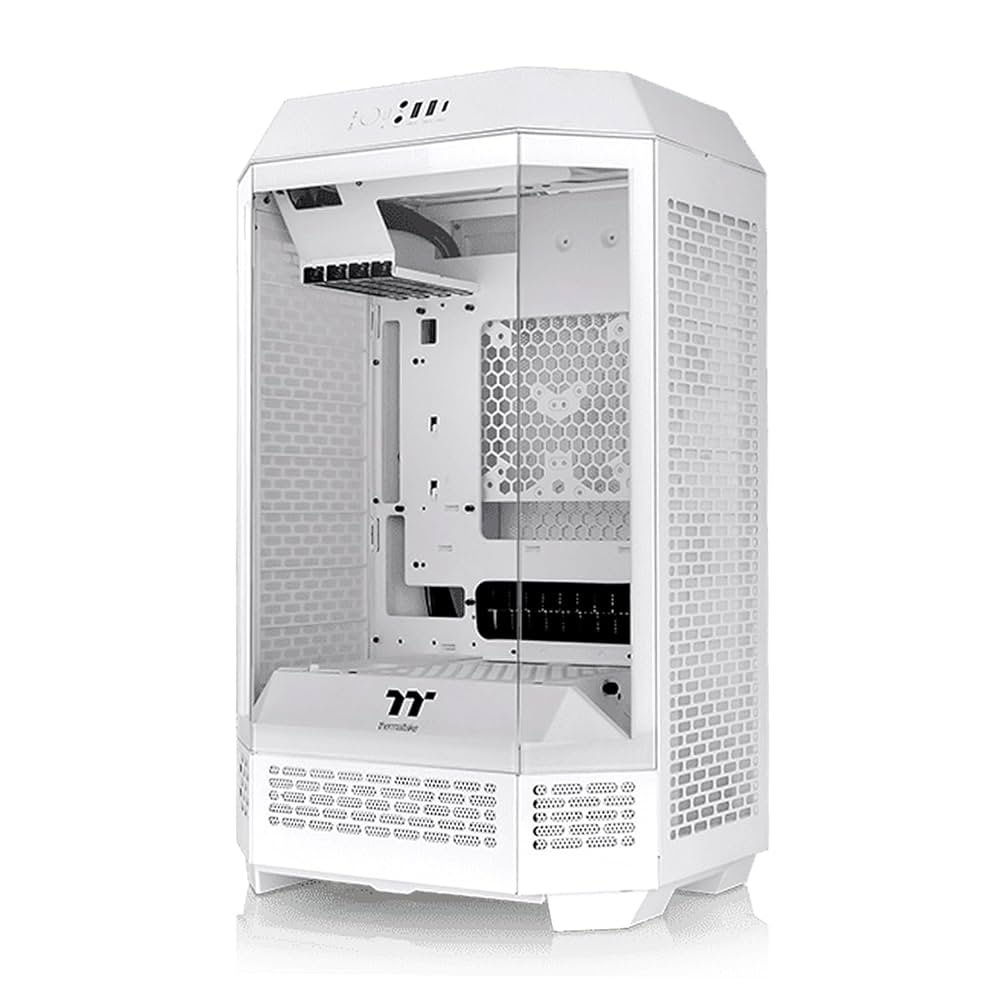 De Thermaltake The Tower 300 Snow is een compacte micro tower behuizing die het kenmerkende verticale ontwerp van de Tower serie voortzet in een moderne prismavorm. De witte afwerking en glazen panelen geven het systeem een frisse en stijlvolle uitstraling.