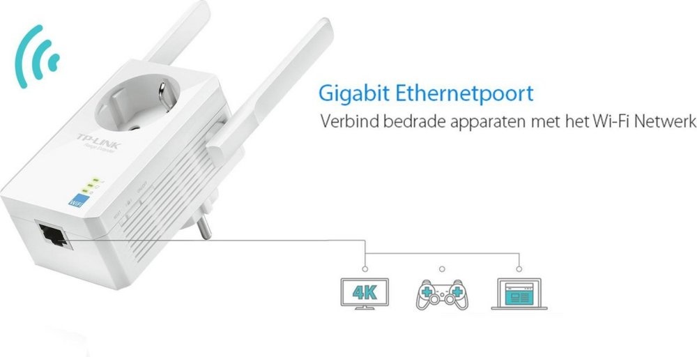De TL-WA860RE van TP-LINK is bedoeld om op een gemakkelijke manier het dekkingsgebied te vergroten en de signaalsterkte te verbeteren van een bestaand draadloos netwerk, om "dode zones" te elimineren. Dankzij de draadloos N snelheid van 300 Mbps, Range Extender toets, het miniatuur formaat en wandmontage ontwerp is het uitbreiden van een draadloos netwerk nog nooit zo eenvoudig geweest. Het geïntegreerde stopcontact zorgt dat er een netspanning aansluiting voor andere apparaten beschikbaar blijft. Bovendien kan de TL-WA860RE via zijn ethernet-aansluiting als draadloos adapter worden gebruikt, om van een bekabeld apparaat een draadloos apparaat te maken. Met zijn draadloos 802.11n snelheid van 300 Mbps is hij zeer geschikt voor soepele HD video, muziek streamen en online gaming.